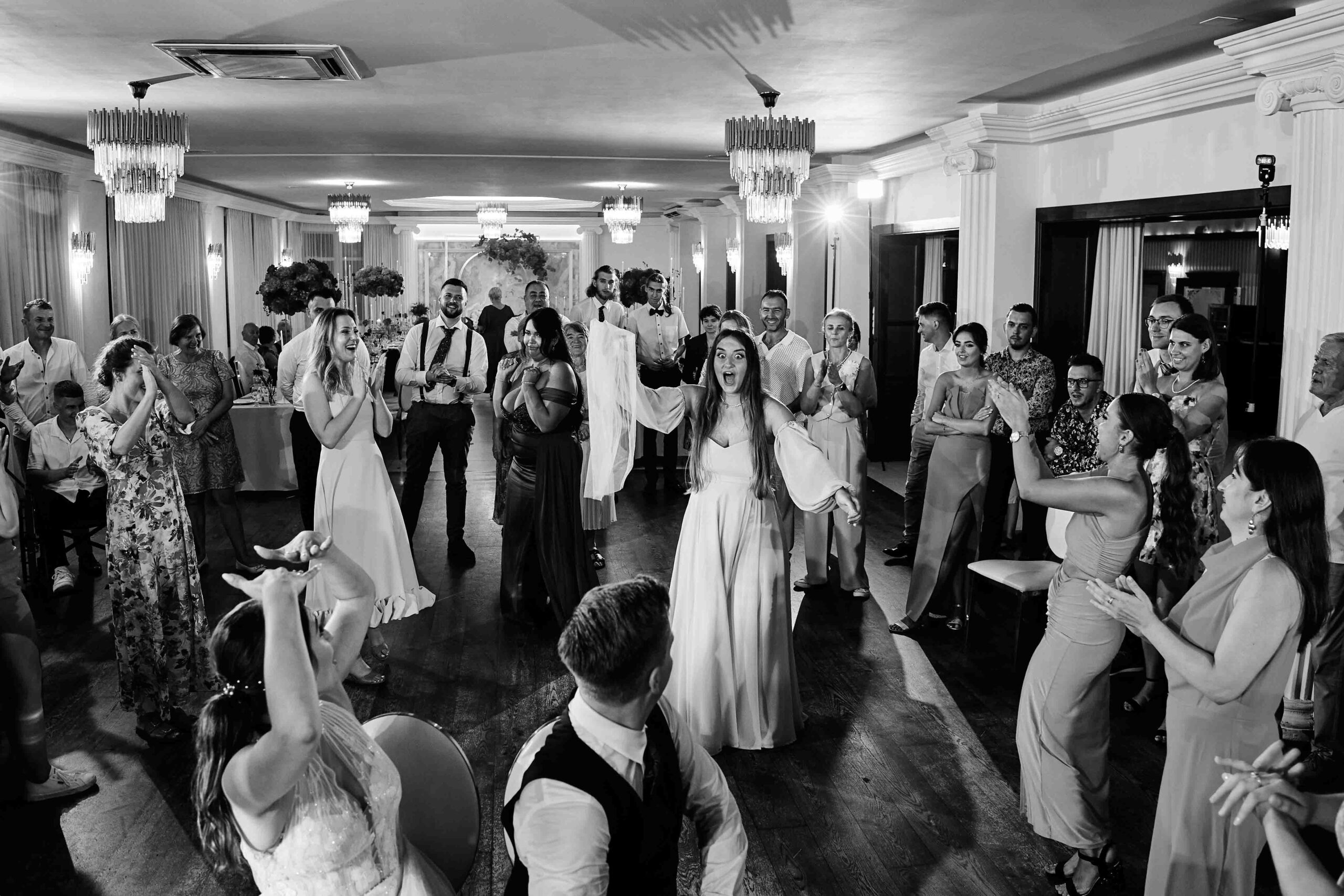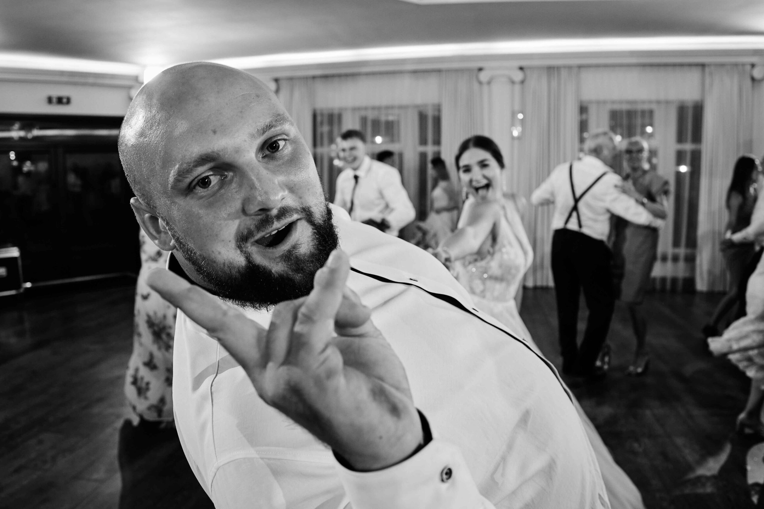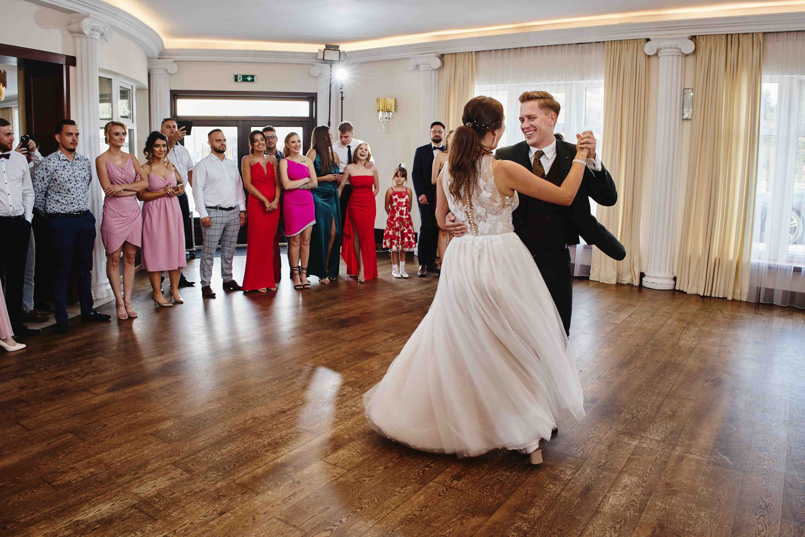 Goście, od samego początku nastawieni na dobrą zabawę, dali z siebie wszystko na parkiecie – klimat był totalnie szalony, a muzyka niosła się aż za okna. Bez stresu, bez zbędnego pośpiechu, wszyscy po prostu cieszyli się chwilą i miłością, którą Paulina i Kacper wręcz zarażali.