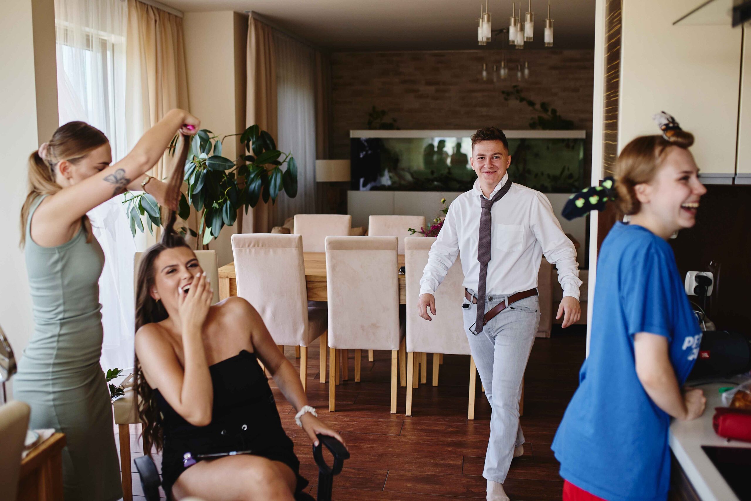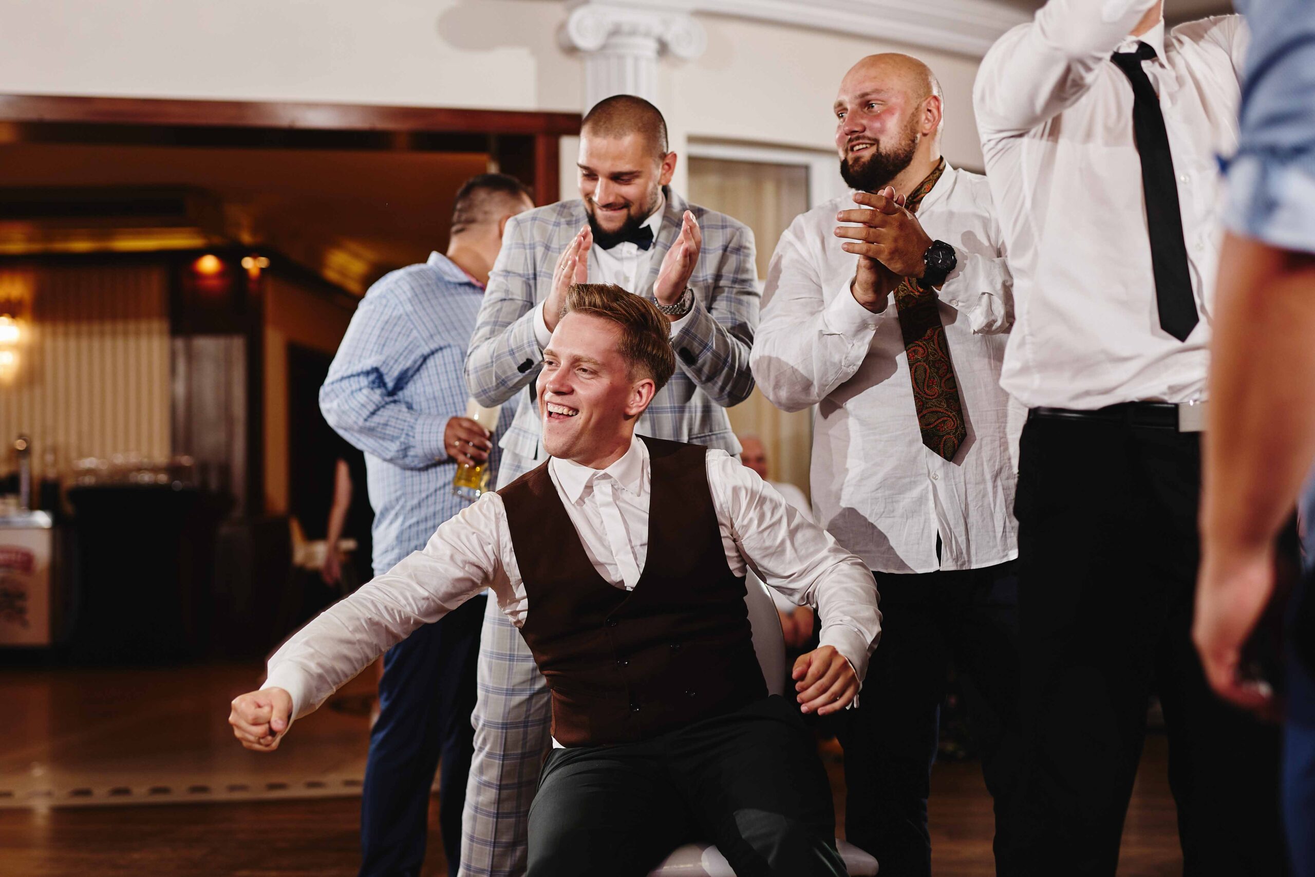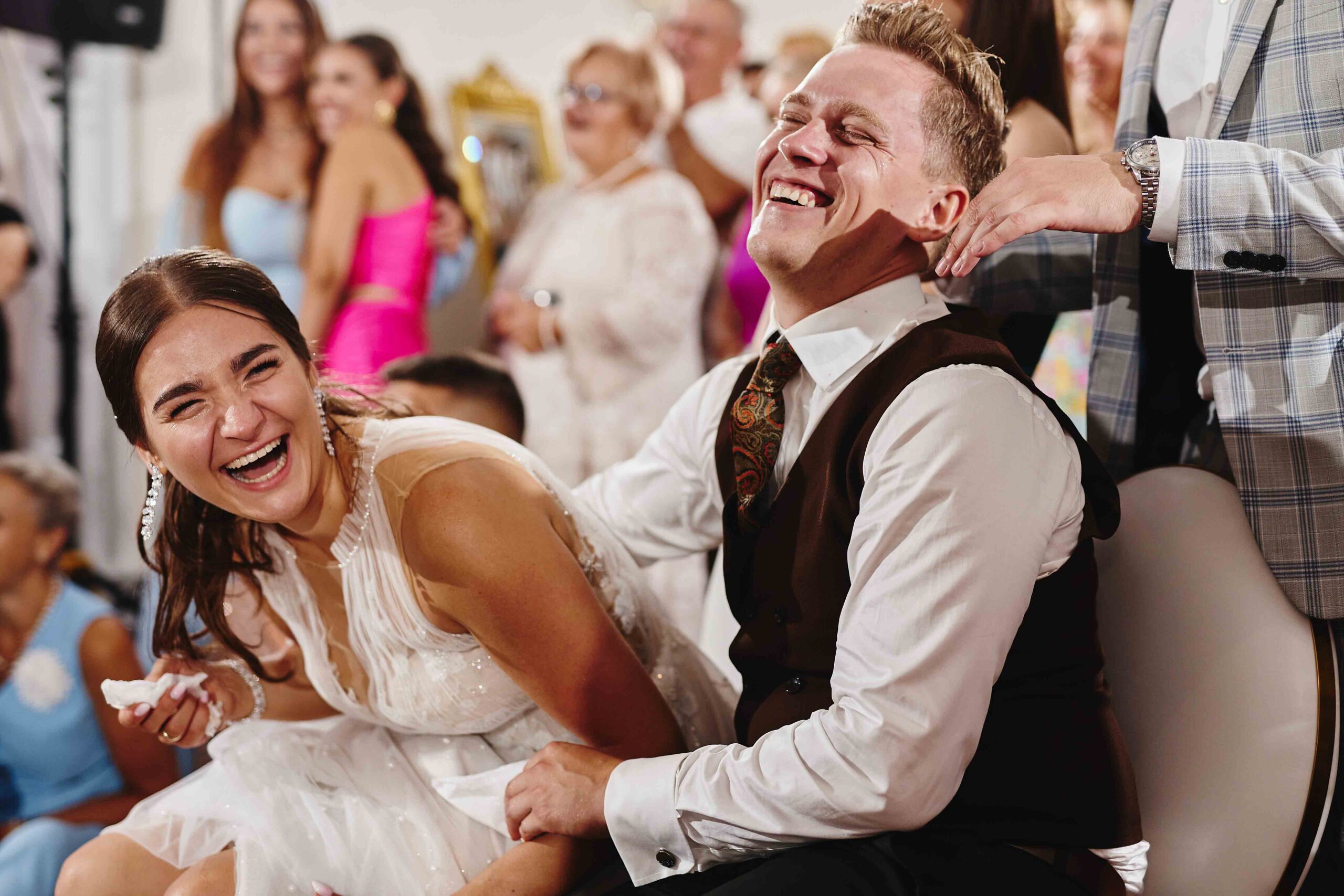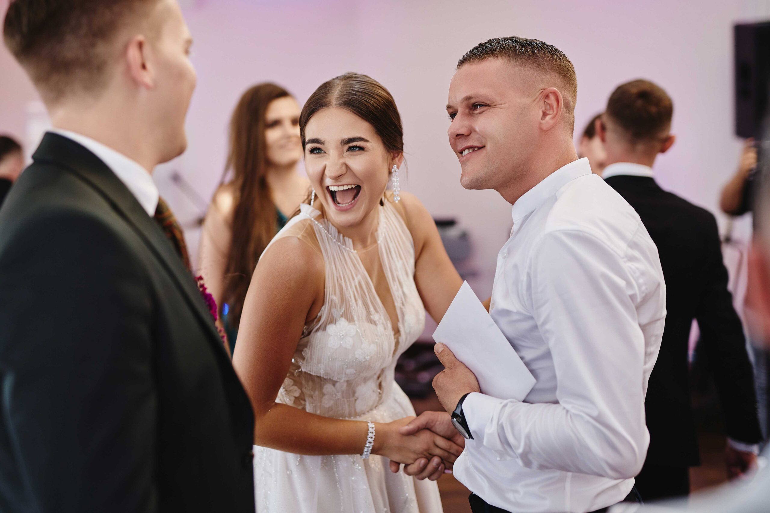 Goście, od samego początku nastawieni na dobrą zabawę, dali z siebie wszystko na parkiecie – klimat był totalnie szalony, a muzyka niosła się aż za okna. Bez stresu, bez zbędnego pośpiechu, wszyscy po prostu cieszyli się chwilą i miłością, którą Paulina i Kacper wręcz zarażali.