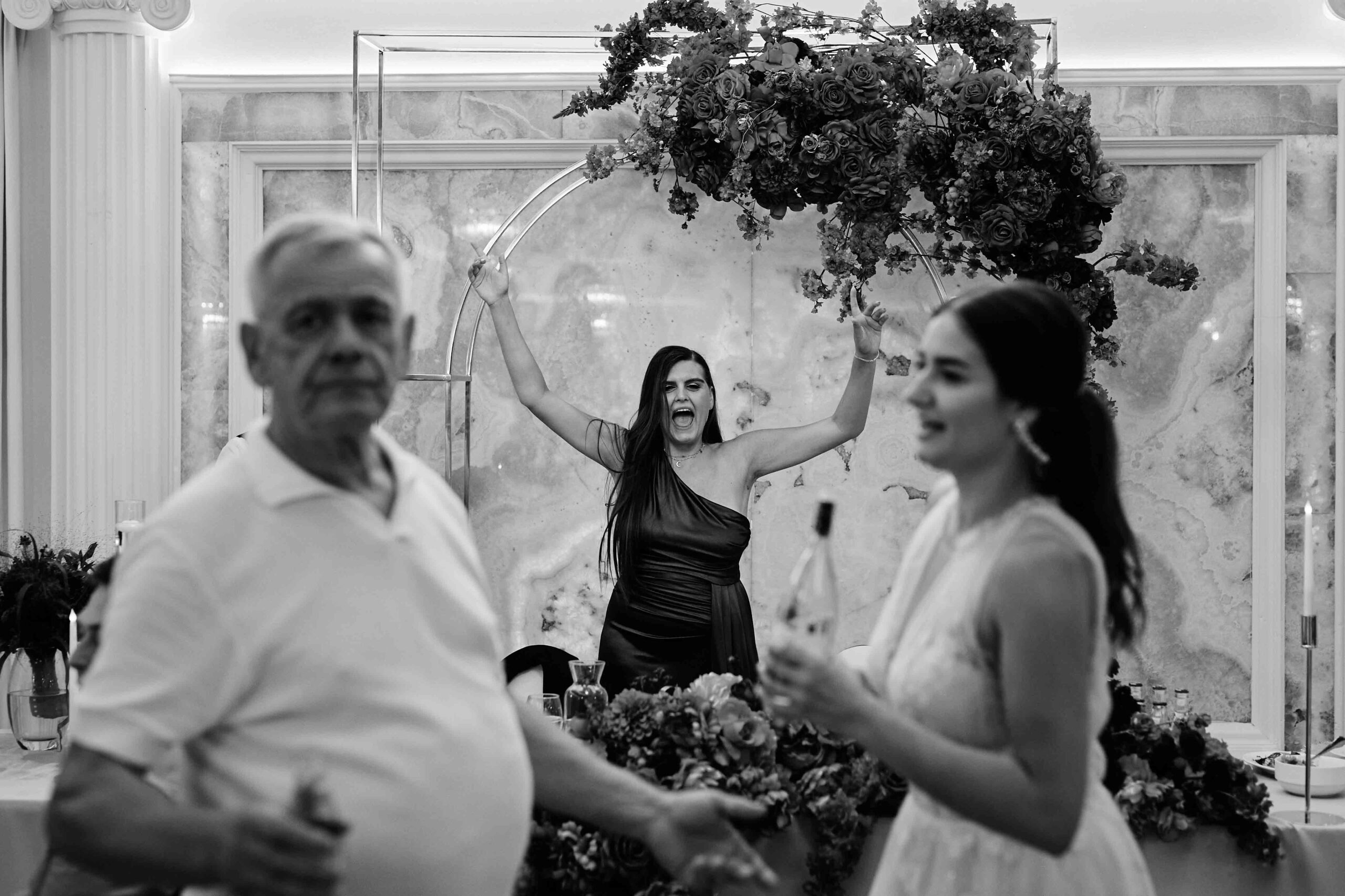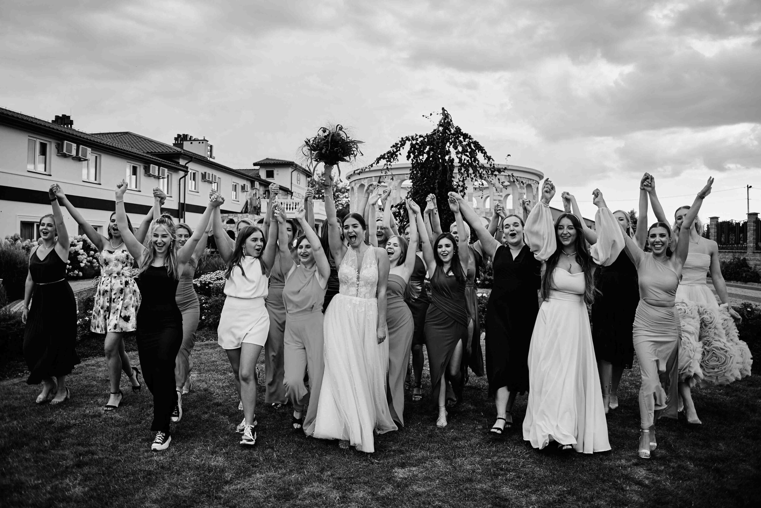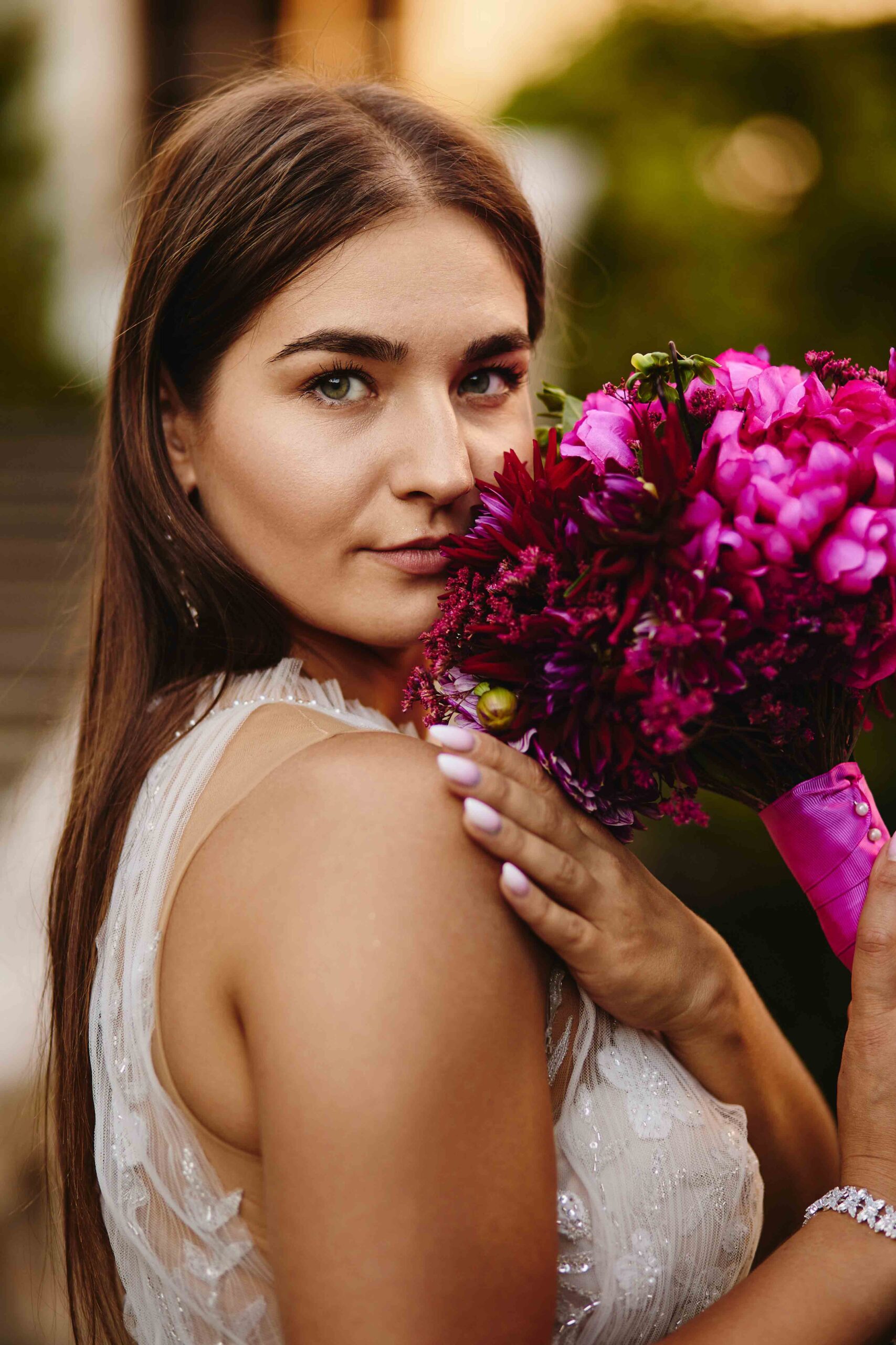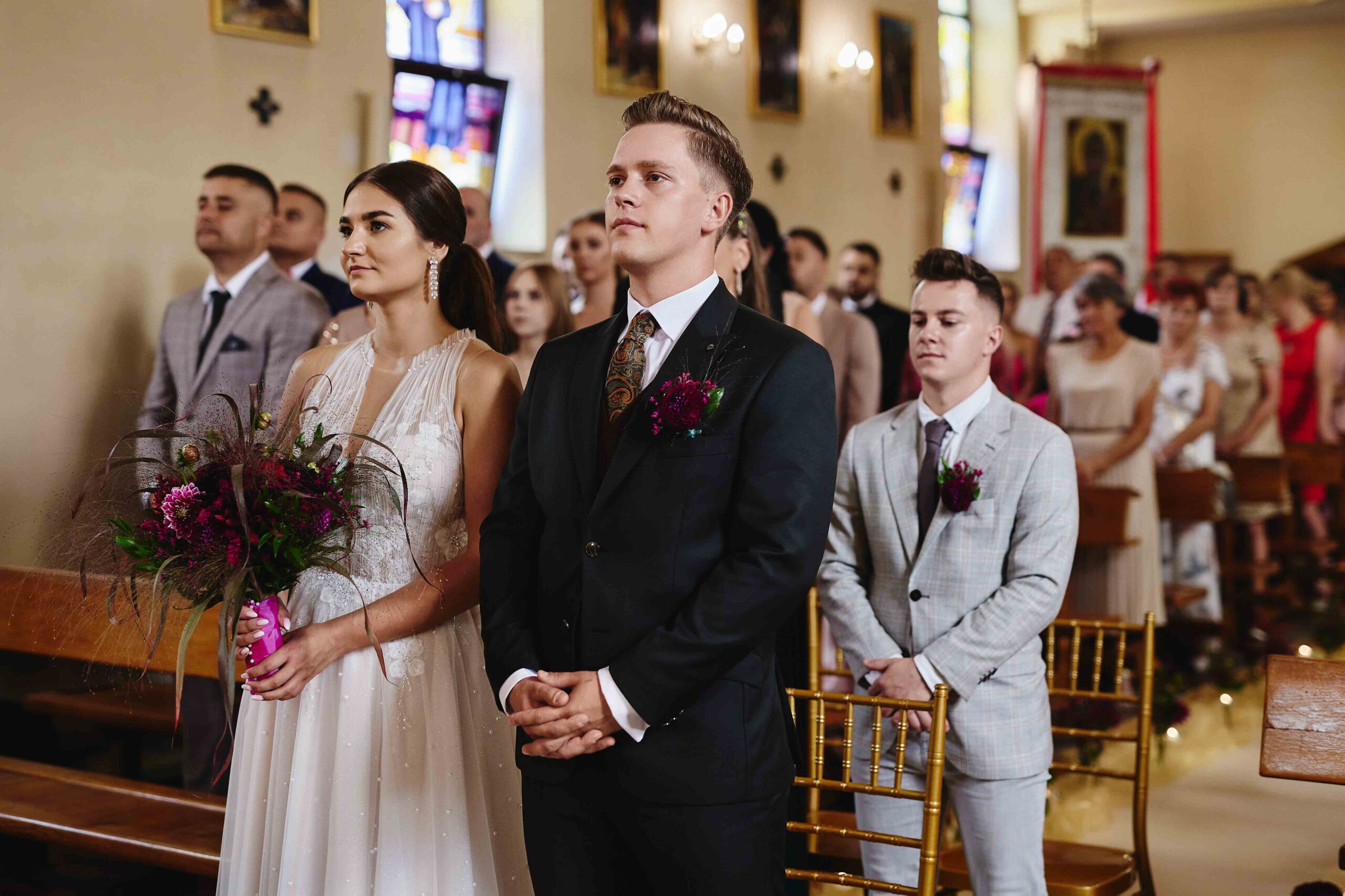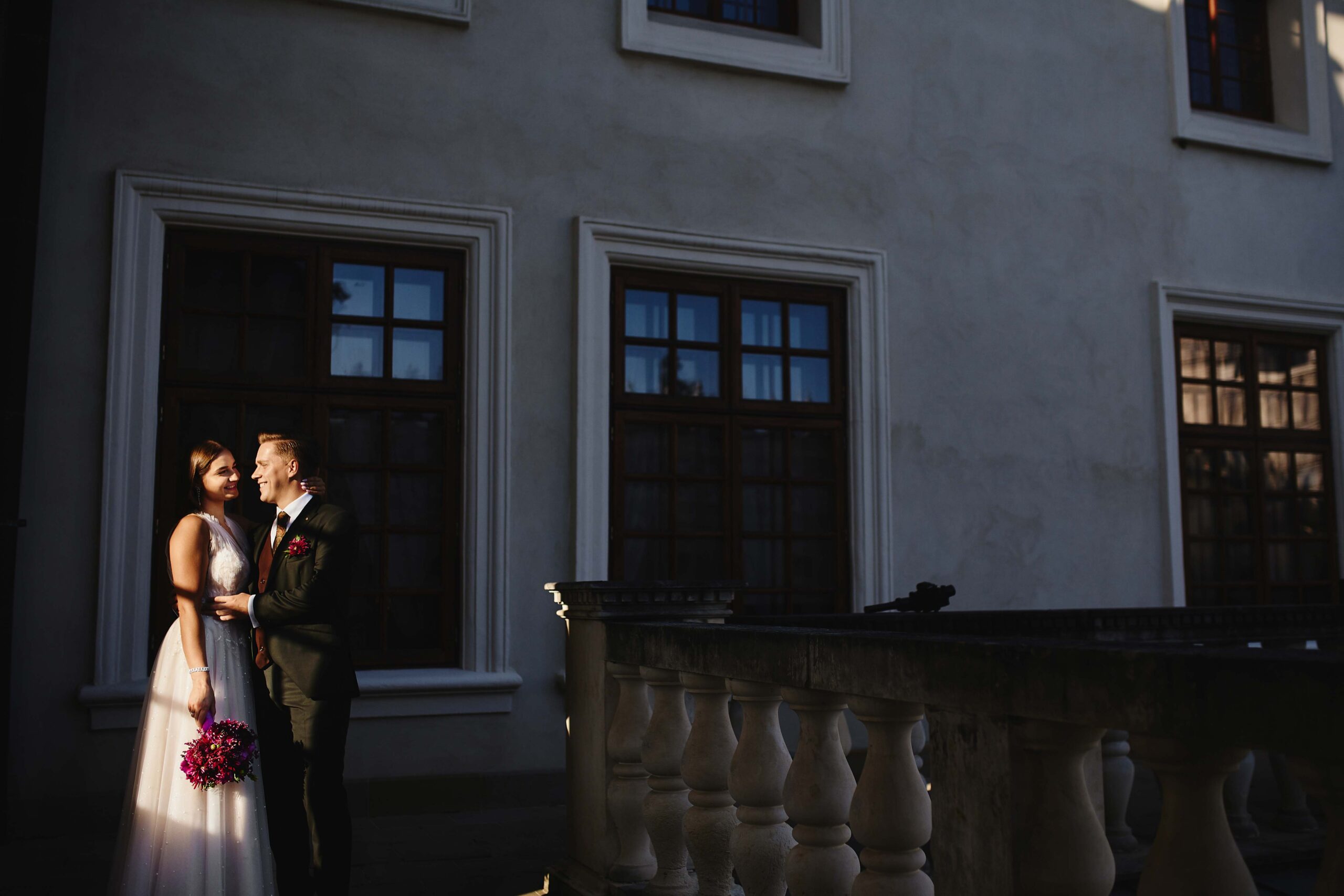 Kolorem przewodnim tego pięknego dnia był róż – idealnie dopasowany do bukietu Panny Młodej, który wyglądał jak wyjęty z bajki. Wszystko było spójne, eleganckie, a jednocześnie z nutą świeżości i luzu. Sala weselna Koloseum w Jarosławiu, z majestatyczną fasadą, nadała całości wyjątkowego charakteru – zwłaszcza wieczorem, kiedy oświetliliśmy ją zimnymi ogniami, tworząc widowiskowe kadry. ✨