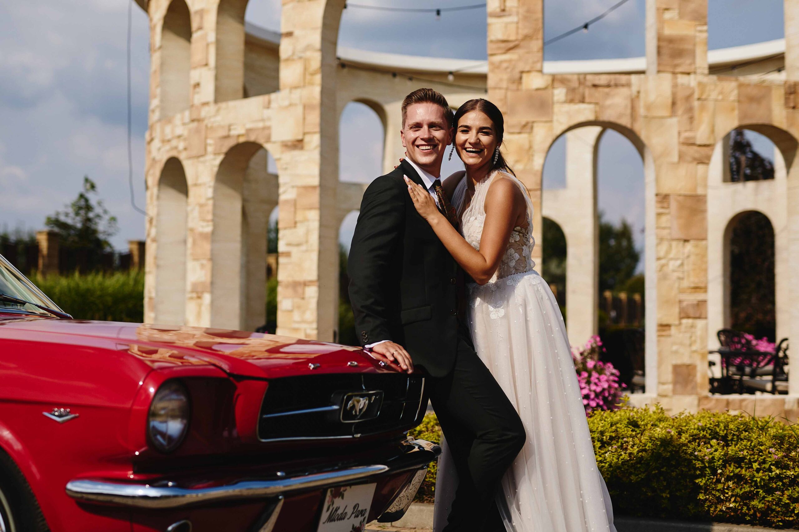 W słoneczny dzień, który aż pachniał szczęściem, Paulina i Kacper powiedzieli sobie sakramentalne “tak”. Już od rana było jasne, że to nie będzie zwykłe wesele – wszyscy czuli niesamowitą energię, luz i radość. Para Młoda, pełna uśmiechu, do ślubu wyruszyła czerwonym, ryczącym Mustangiem, który z daleka zapowiadał, że ten dzień zostanie zapamiętany na długo. Mustang rozbrzmiewał po całej wiosce, wzbudzając zachwyt i lekką zazdrość sąsiadów. 😎